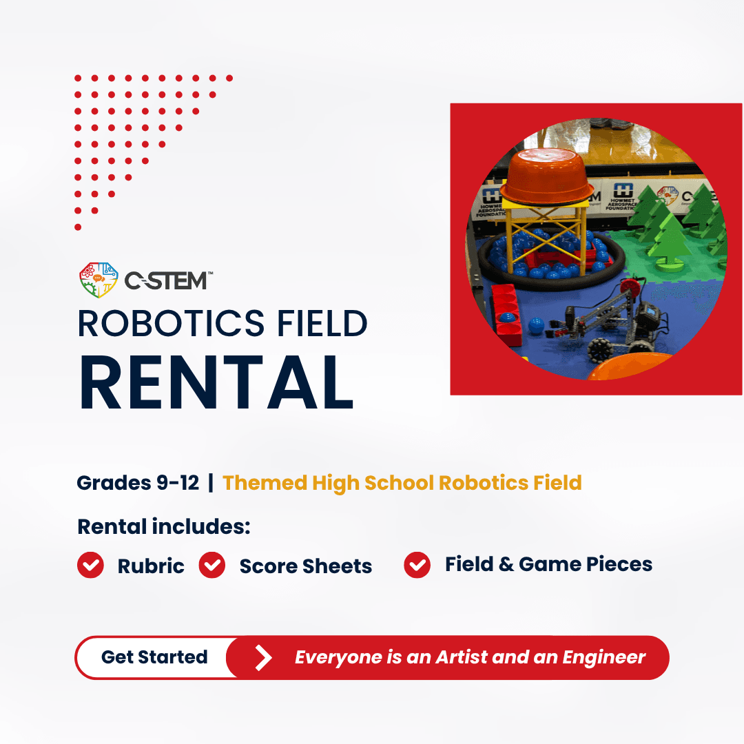 The C-STEM Challenge High School Robotics Field Rental provides schools with a comprehensive, ready-to-use competition arena specifically designed for the annual C-STEM Robotics Challenge. Unlike generic VEX fields, each C-STEM Robotics Field is custom-engineered, themed, and aligned to the year’s C-STEM Challenge—providing an authentic, hands-on experience that sparks innovation, teamwork, and STEM mastery.