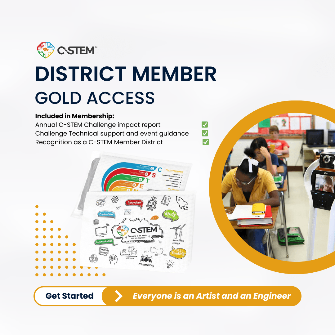 The C-STEM Gold Access Membership is designed for school districts committed to expanding equitable access to STEM education, workforce readiness, and innovation-based learning across all campuses.
